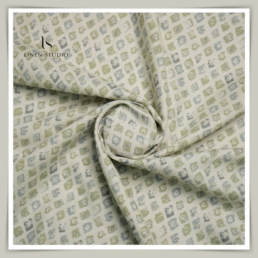 Burgoyne 60 Lea Premium Linen Printed Shirting - Multicolour Rectangles (NEW)