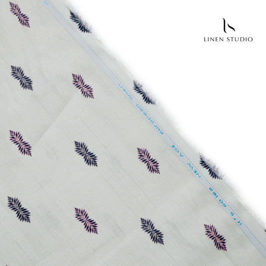 60 Lea Printed Linen Shirting by Burgoyne - Off White Blue (NEW)