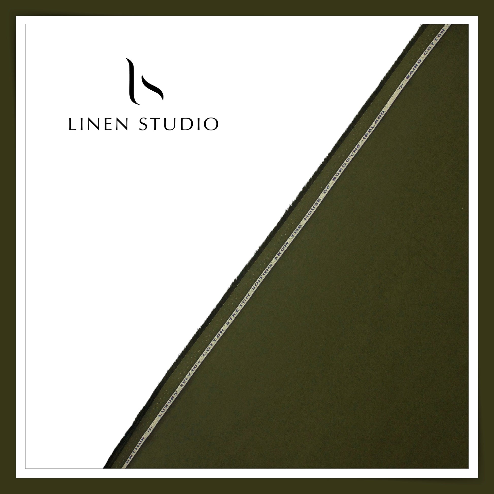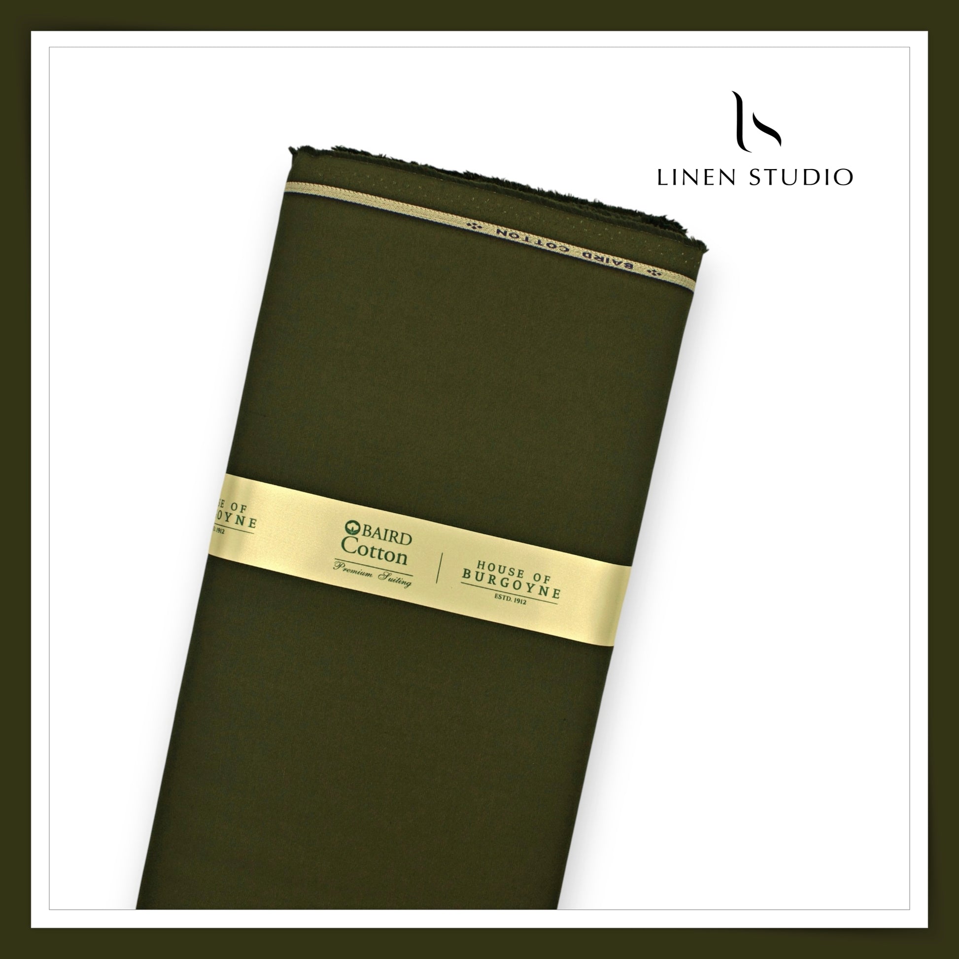 3 Ply 60's Count Stretchable Plain Cotton Suiting by Burgoyne Ireland - Military Green