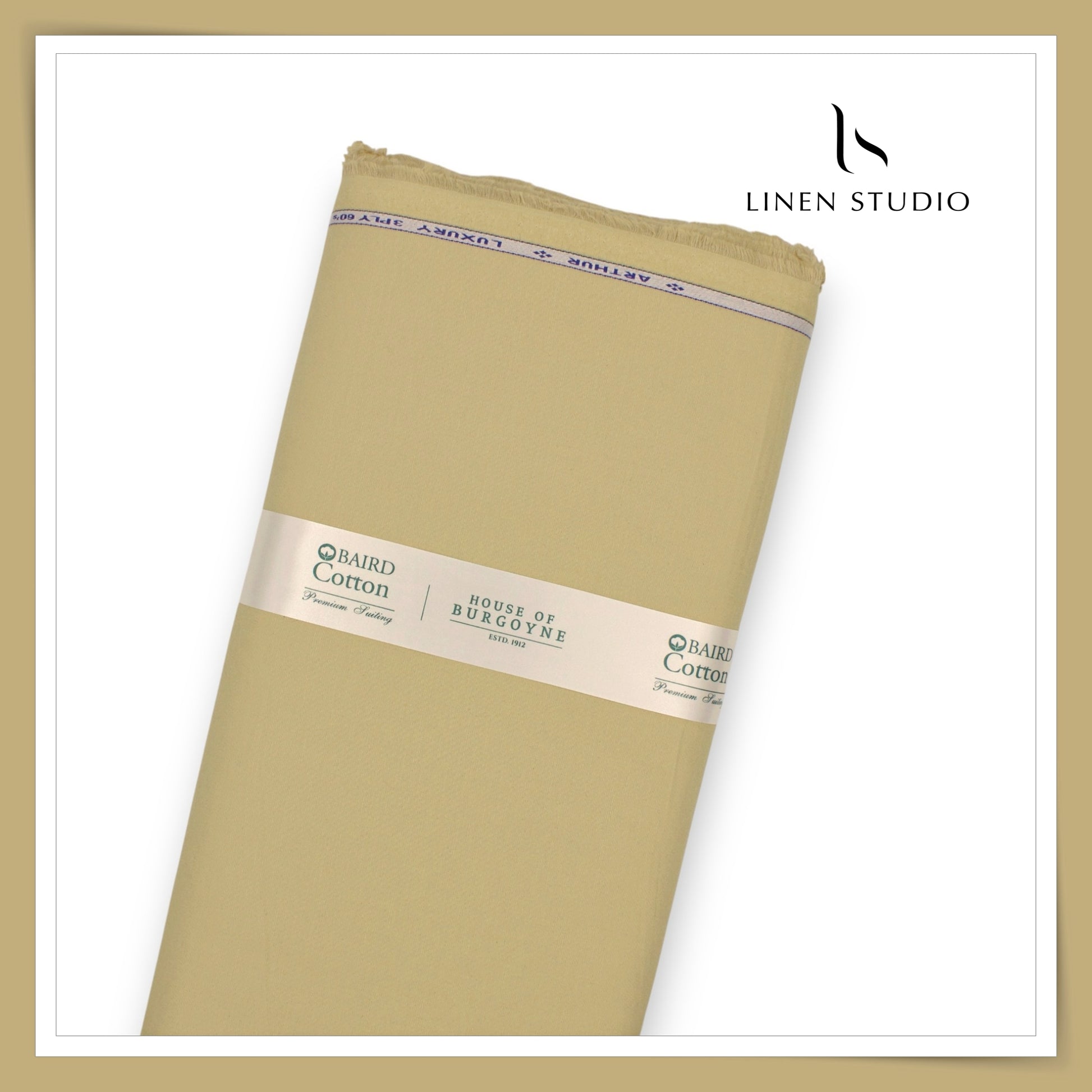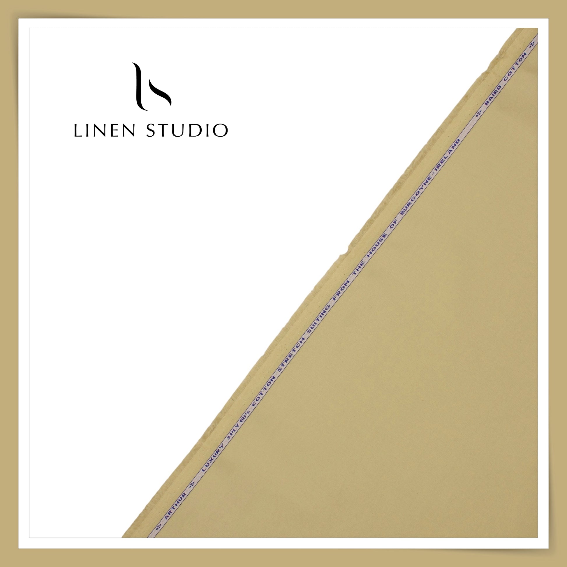3 Ply 60's Count Stretchable Plain Cotton Suiting by Burgoyne Ireland - Light Khaki