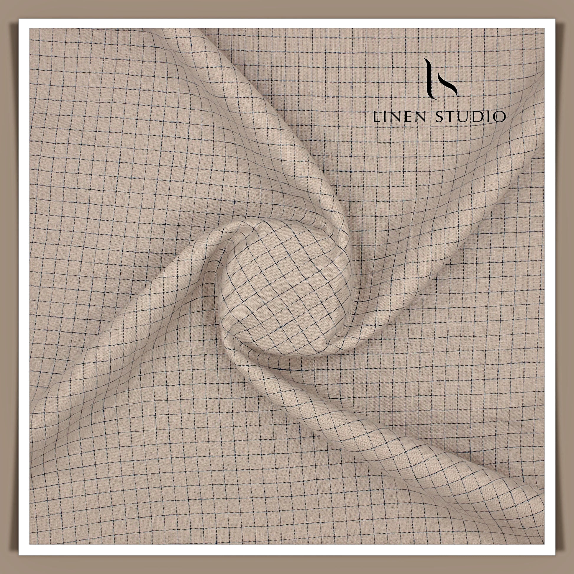 60 Lea European Linen Shirting - French Beige Checks (NEW)