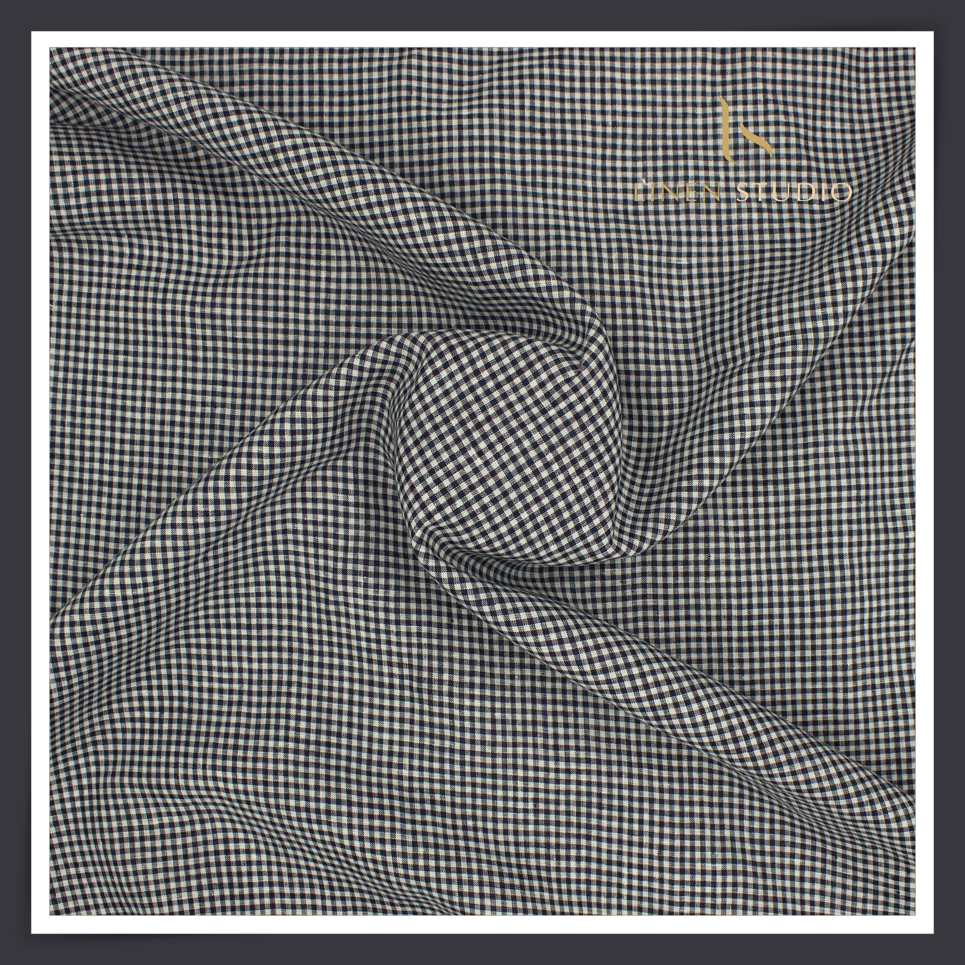 80 Lea Pure Linen Premium Shirting by Burgoyne - Black & White Houndstooth Checks (NEW)