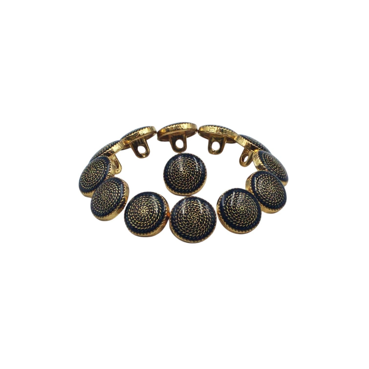 - These shiny gold with dark green enamel downhole buttons are crafted from a metal alloy for the strongest & most durable buttons, have a shank back attachment & have a shiny gold engraved design on a dark green base surface finish. These classics are mainly used for decoration on the garment to portray classical designs & modern aesthetics.
